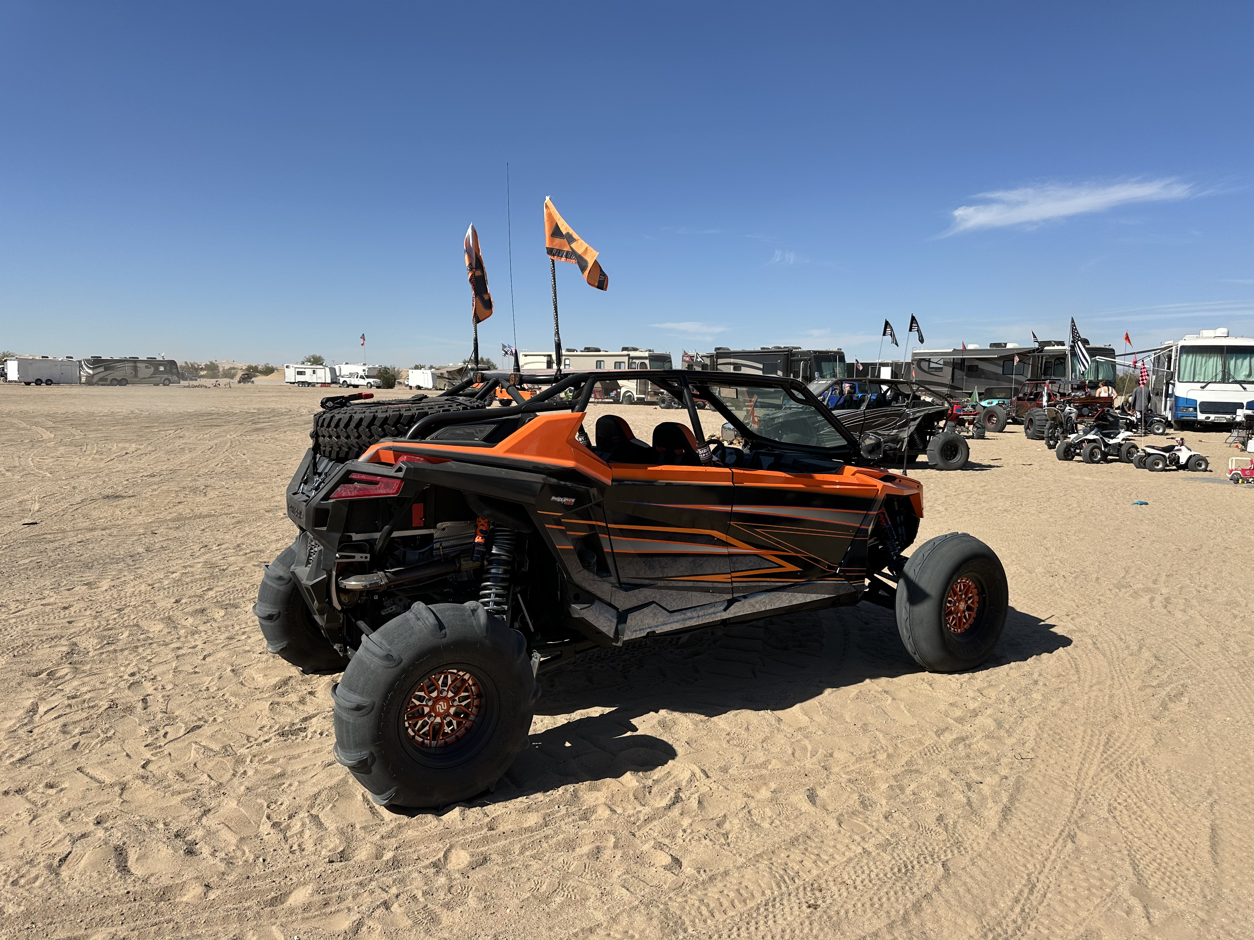 Utilizing 4wd will help to spread the load through all of the drivetrain components such as CV joints, axles, transmission, and belts, reducing the chance of those parts failing and generally helping all parts last longer. There are some arguments to this as front differentials are a common weak link in most UTV’s. In my experience, most of the front differential failures occur with hardpack use running at high speeds over rough terrain and large whoops. Dunes are typically a little easier on front diffs due to the softer, flowy nature of the terrain. Most UTV diff and transmission failures are no fault of the driver. Poor quality parts and assembly are the reason why these complex parts fail with normal use, which is a good reason to spend a little extra money to upgrade diffs and transmissions to help prevent those failures from ruining your weekend. The “Lockers before lightbars” attitude goes a long way to ensure a successful trip to the dunes.
